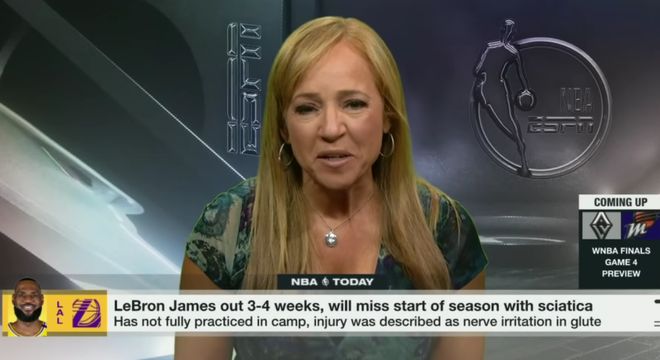 Shams在節目中表示,詹姆斯的傷病“首次出現於7月末至8月初的一次球場訓練期間”。他還提到,受此傷病影響,在9月30日訓練營開啟前,詹姆斯“已有一個多月未進行太多籃球相關訓練”。